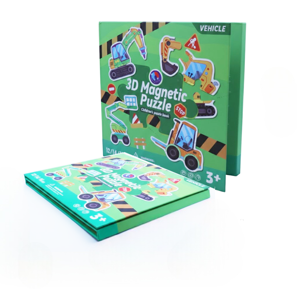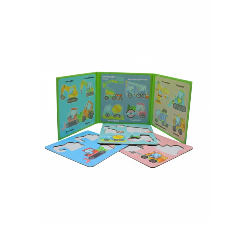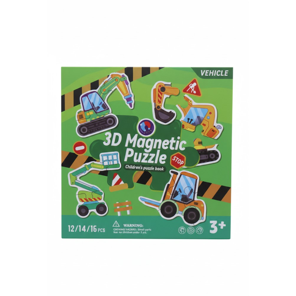 Make your child’s playtime more exciting and educational with this 3D Magnetic Puzzle Vehicle Theme Book. Specially designed for kids aged 3 years and above, this puzzle book combines fun with learning. Bright and colorful vehicle illustrations grab children’s attention while helping them recognize different construction and transport vehicles. It is a perfect activity toy that keeps kids engaged without screens.