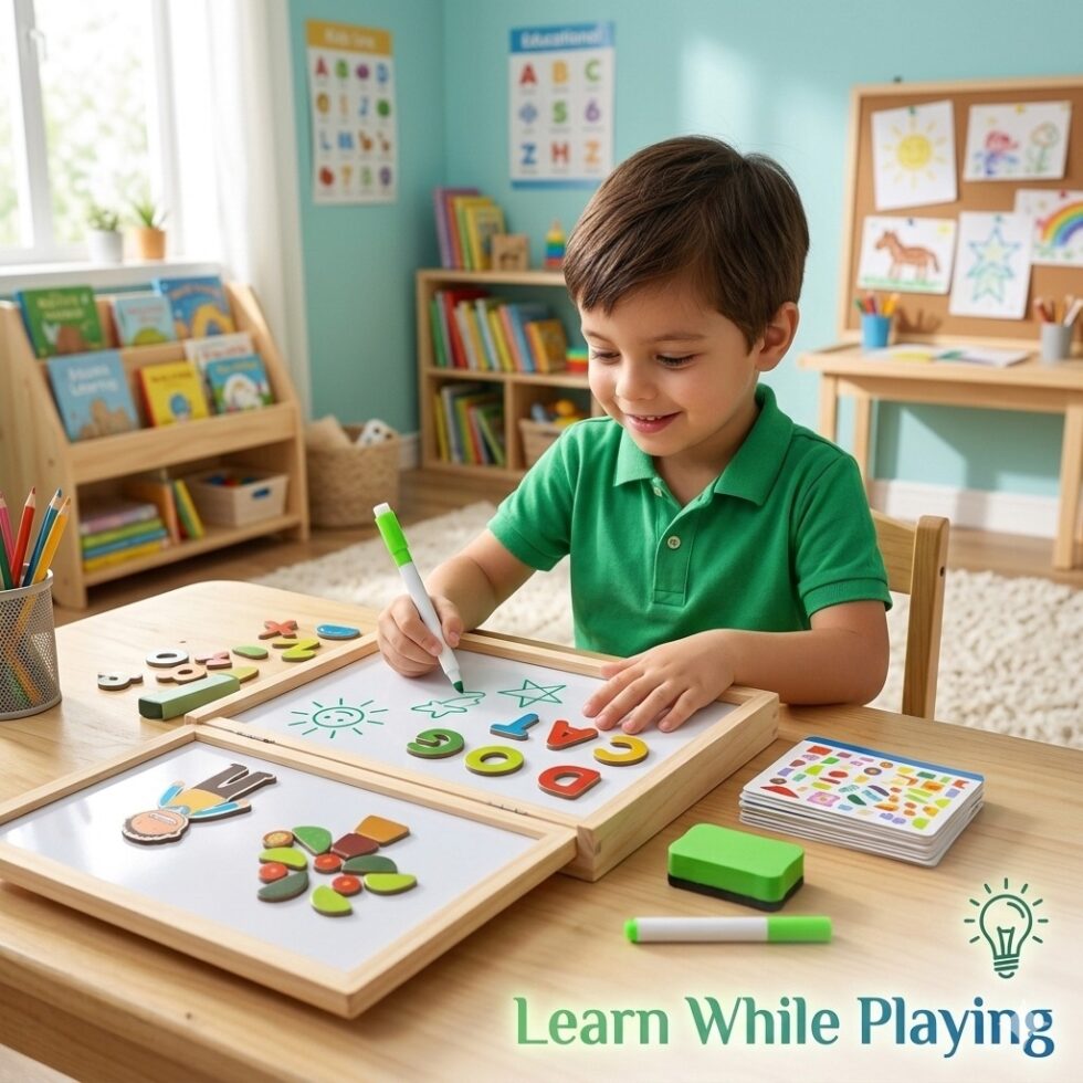 4-in-1 Learning Activities – Math, drawing, shapes, and letters