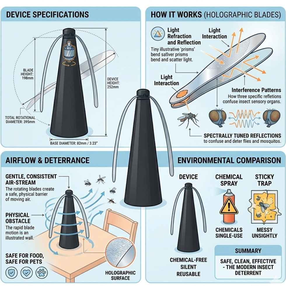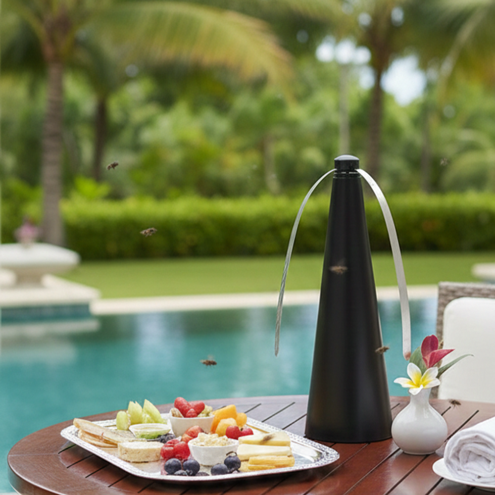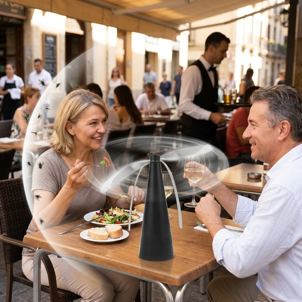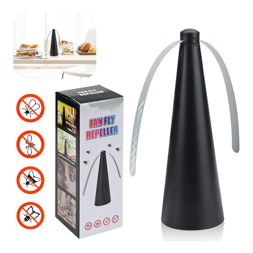 Keep your food and outdoor spaces free from flies, wasps, bees, and other insects with this Outdoor Fly Repellent Fan. Designed for tabletop or hanging use, it’s perfect for restaurants, BBQs, bars, and outdoor events. Battery-operated and portable, this fan provides effective, chemical-free bug control wherever you need it.