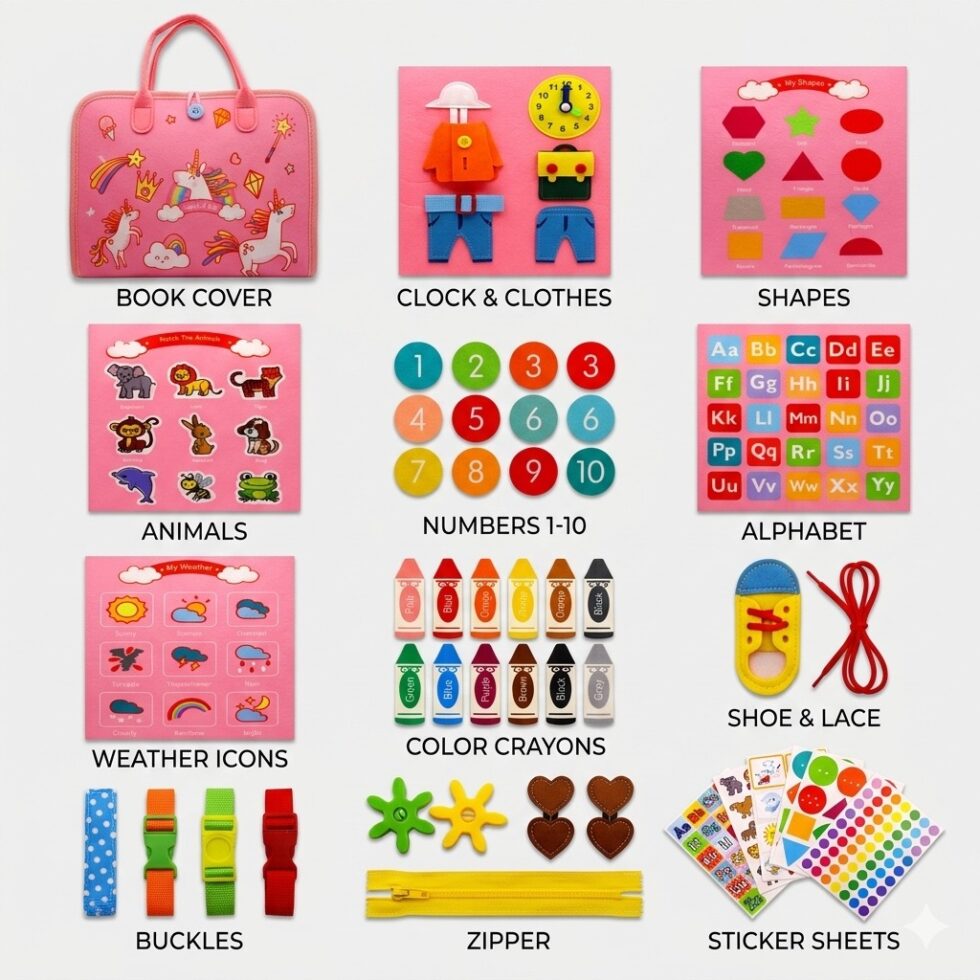 This educational toy book is perfect for toddlers and preschool children, making learning fun, interactive, and creative.