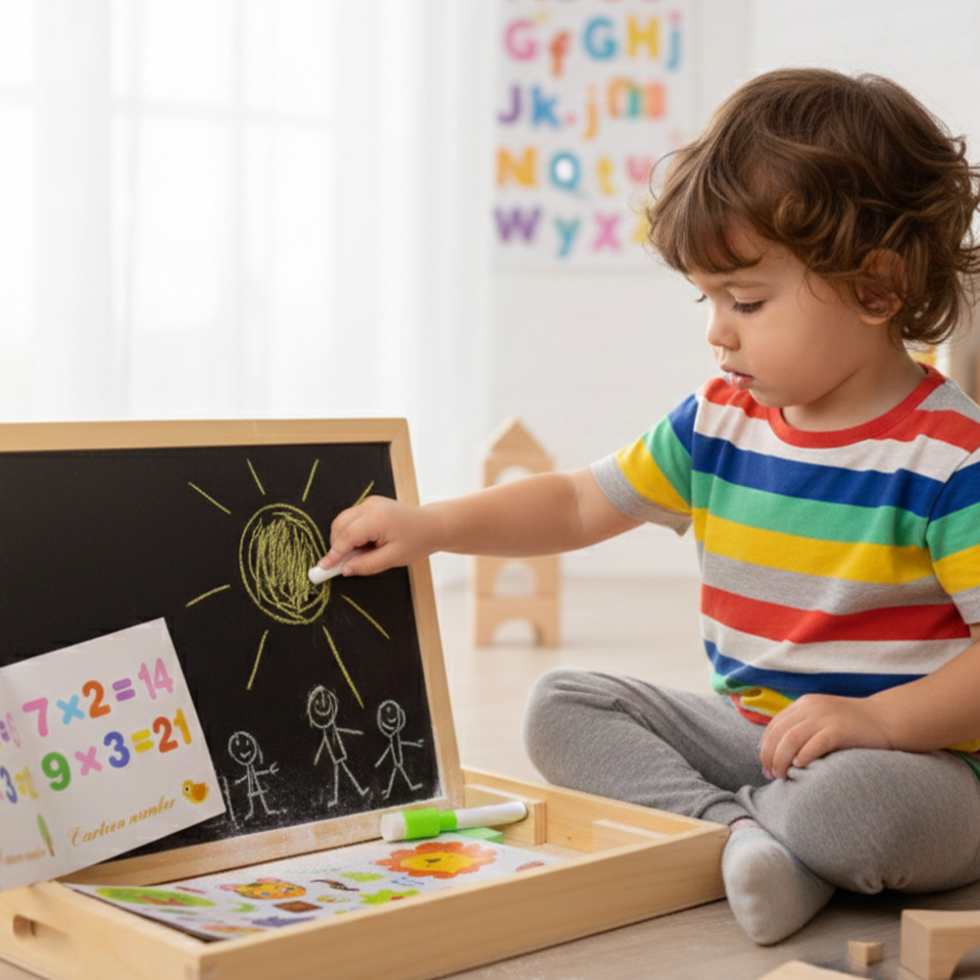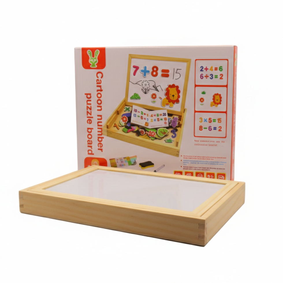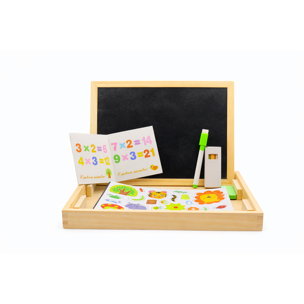 The Wooden Animal & Math Learning Board is a fun and educational toy for children 3+ years. It features colorful animal stickers, a mini chalkboard, and interactive math exercises that develop cognitive skills, hand-eye coordination, and problem-solving abilities.