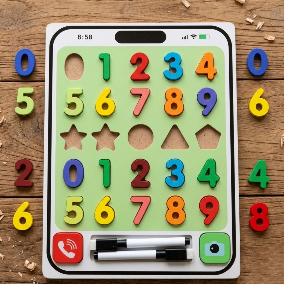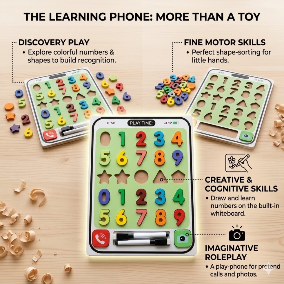Wooden Counting Learning Toy 2-in-1 with Whiteboard – Smart Phone Design