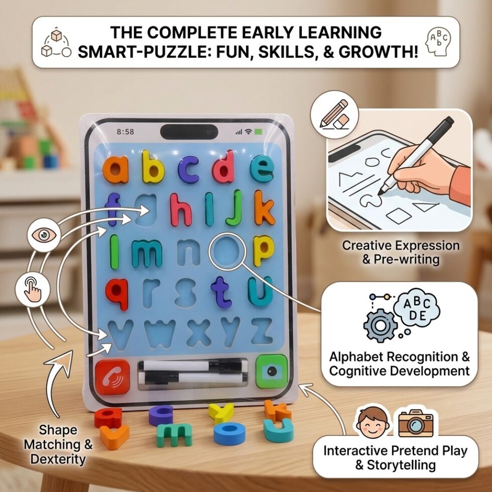 2-in-1 Design: Features ABC letters and a reusable whiteboard for writing, drawing, and practicing.